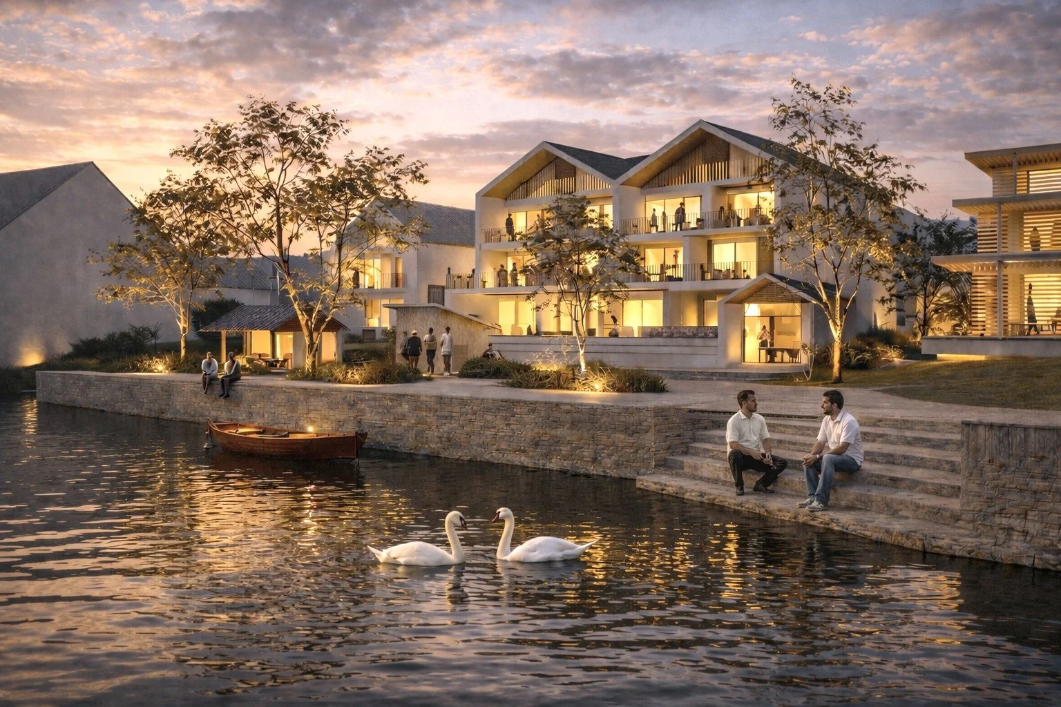 Dort, wo zwei Länder an einem Fluss zusammentreffen, steht RHYSLING · RHEINHAVEN für sich allein. Ein Ort, an dem die Natur zum ständigen Begleiter wird und der Hochrhein Ihr täglicher Horizont ist – wo deutsches Eigentumsrecht und Schweizer Lebensqualität zu einer europaweit einzigartigen Adresse verschmelzen. Für jene, die das Aussergewöhnliche suchen – und den Anspruch haben, es zu erkennen.